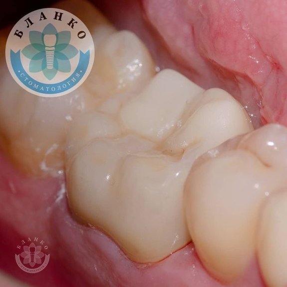 — сняты оттиски и изготовлена высокопрочная, гипоаллергенная и высокоэстетичная коронка из диоксида циркония.