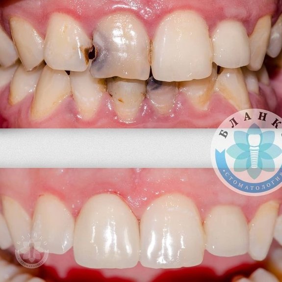 🤩Просто клинический случай лечения кариеса и одиночной коронки в переднем отделе.