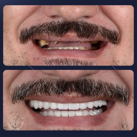 ✅ В то же посещение были сняты оттиски для изготовления временных зубов. Через неделю временные зубы установлены на импланты. Через 4 месяца протокольное снятие оттисков на постоянные коронки из оксида циркония на имплантах, и через 2 недели окончательная примерка и постоянная фиксация. Параллельно с этим была проведена установка имплантов и протезирование боковых участков💎✨