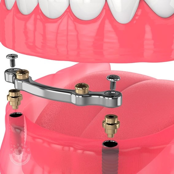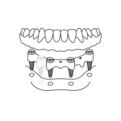 An wichtigen Stellen im Kiefer werden Implantate eingesetzt, die die Stabilität der Struktur gewährleisten. Das nicht entfernbare Stegdesign verteilt die Kaulast auf alle Implantate und erhöht so den Komfort und die Haltbarkeit des Systems.