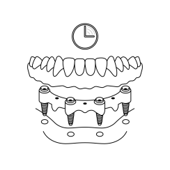 Danach wird eine dauerhafte, nicht entfernbare orthopädische Struktur installiert. Der Patient kann fast sofort wieder normal kauen und sprechen, und die Gewöhnung an das neue Design dauert in der Regel mehrere Wochen.