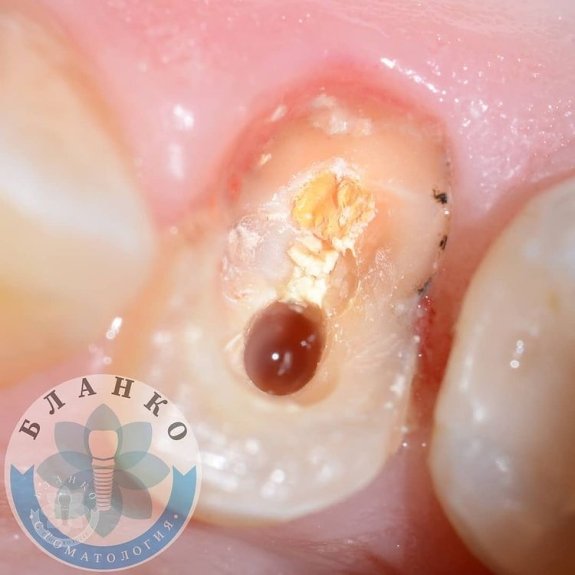 🔸Пациентка обратилась по поводу перелома коронки зуба. И всё бы ничего, если бы коронка не сломалась так глубоко.