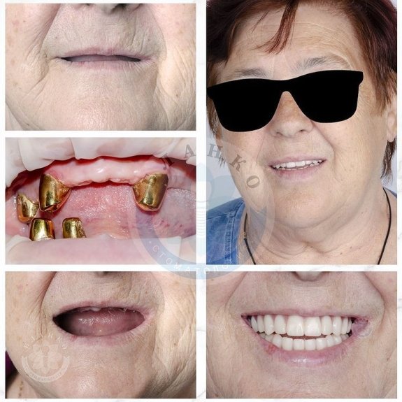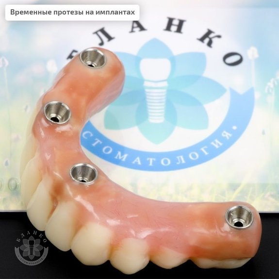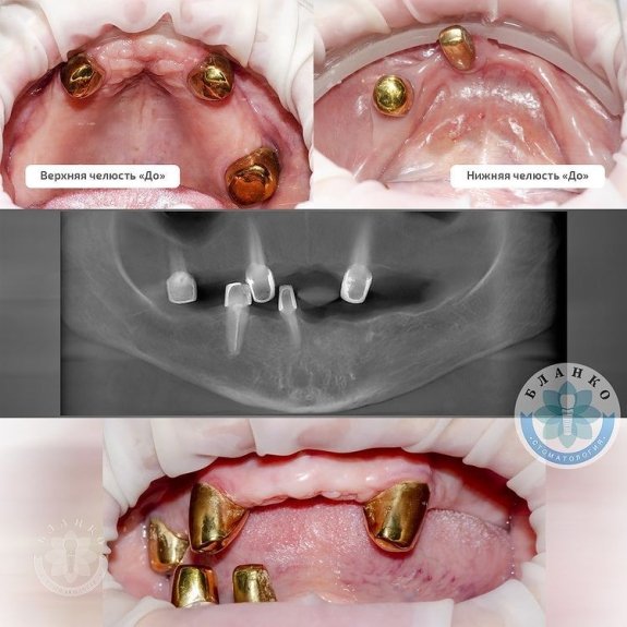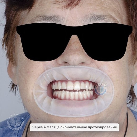 Через 4 месяца постоянное протезирование двумя несъёмными конструкциями на верхней и нижней челюсти.