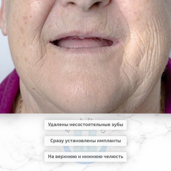 В данной ситуации в первое посещение были удалены оставшиеся зубы, пораженные пародонтитом ( 5 штук ).