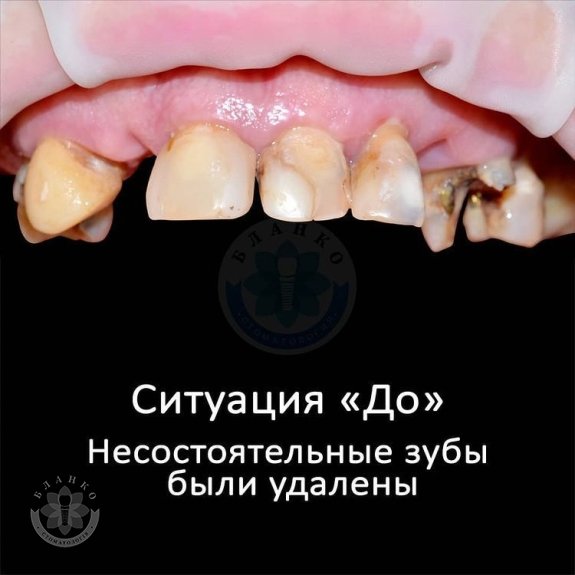 ⛔ Полное удаление несостоятельных зубов на верхней челюсти.