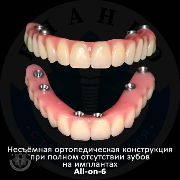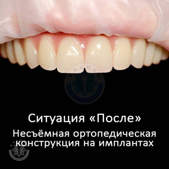 ✅ В тоже посещение установка имплантов в количестве шести единиц и одновременное создание стоматологической командой Бланко временной точно сбалансированной ортопедической несъёмной конструкции на период интеграции имплантов.