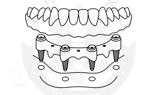 - Установка четырёх имплантов «под ключ» при полном отуствии зубов + несъемная ортопедическая конструкция, балочная фиксация