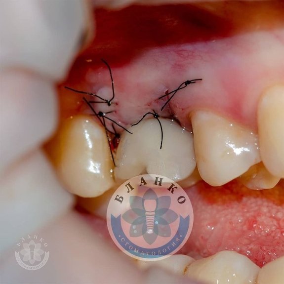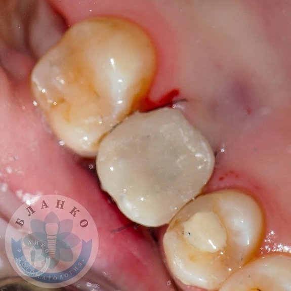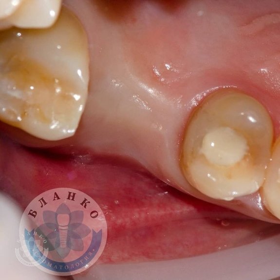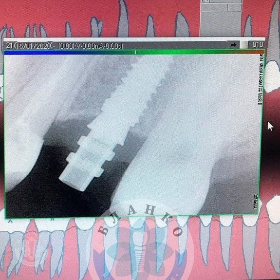 У даному клінічному випадку тривалий час був відсутній верхній 6 зуб. На місце відсутнього зуба було встановлено імплантат та заздалегідь виготовлена тимчасова коронка.