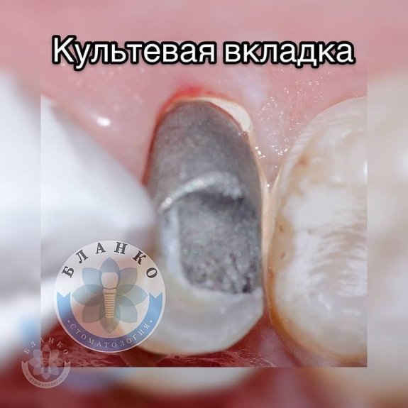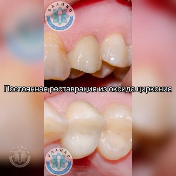 - зуб відновлено за допомогою реставрації з оксиду цирконію;