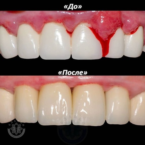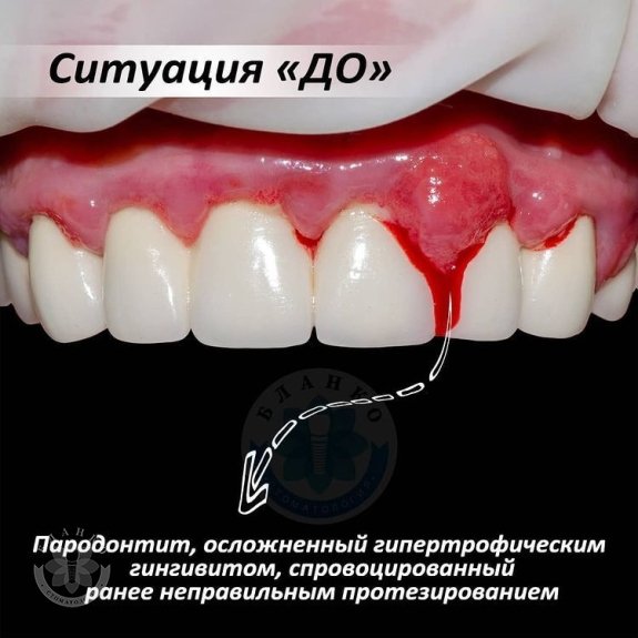 😷 Пацієнт звернувся з пародонтитом, ускладненим гіпертрофічним гінгівітом, спровокованим раніше неправильним протезуванням. На момент звернення стан м'яких тканин був вкрай поганий, ясна були запалені, крові, зуби мали рухливість.
