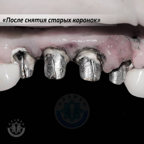 💡 Пародонтит – це захворювання, яке характеризується запаленням пародонту. Пародонт - це структура, яка утримує зуб у кістковій тканині. Етіологія виникнення пародонтиту різноманітна. В даному випадку - травмуючий характер попередніх коронок і дуже глибока обробка тканин зуба "під ясна".