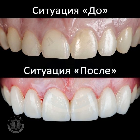 - Приховати візуальні дефекти (потемніння одного із центральних зубів);