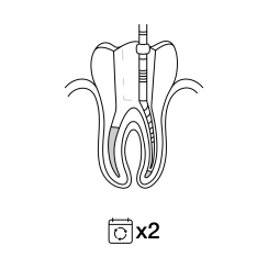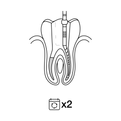 | Перелечивание двухкорневого зуба с постоянной обтурацией в два посещения, с пломбой | 11389 ₴ |