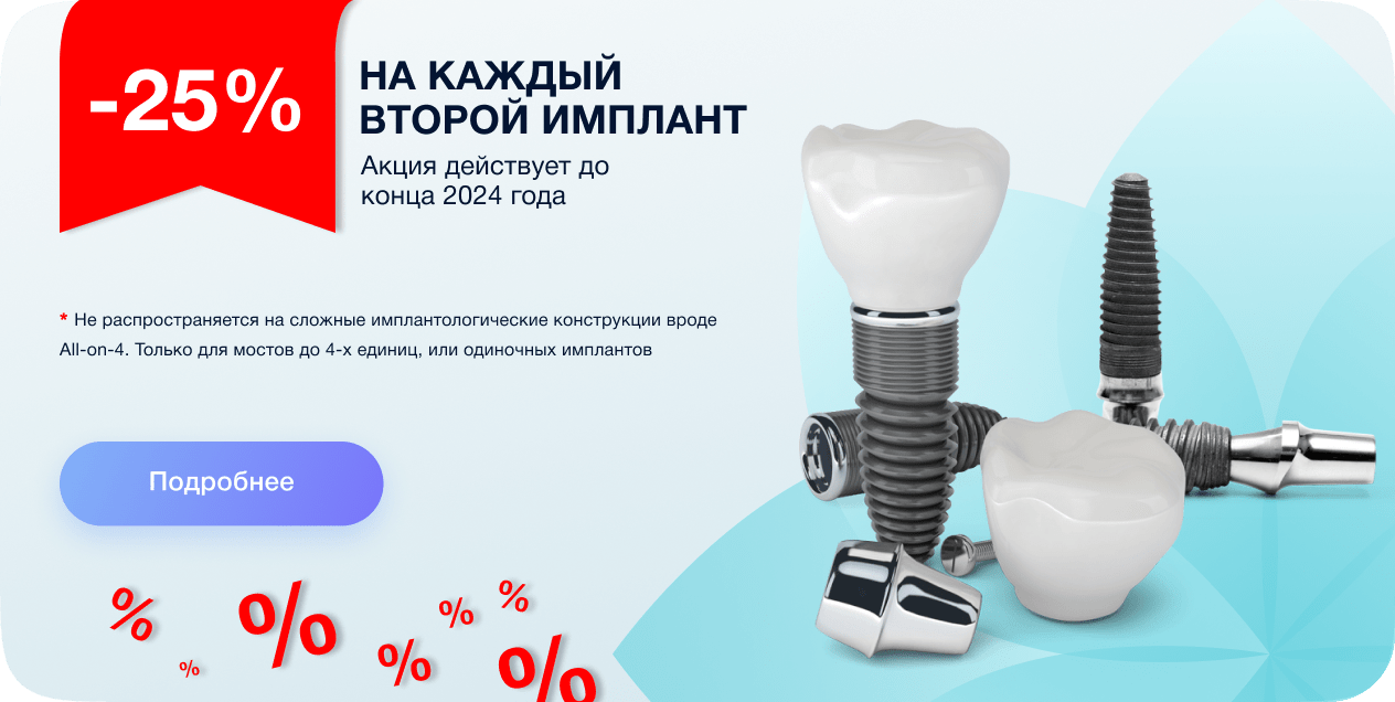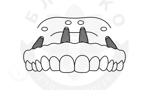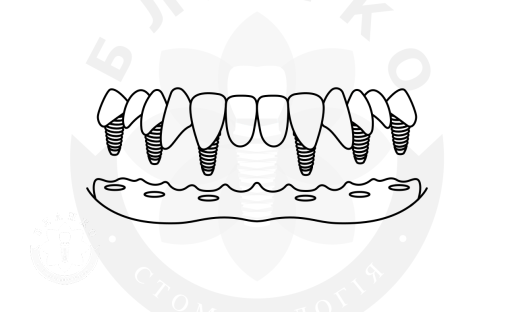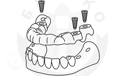 Установка четырёх имплантов «под ключ» при полном отуствии зубов + несъемная ортопедическая конструкция, балочная фиксация