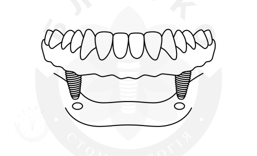 - Установка двух имплантов «под ключ» при полном отсутствии зубов